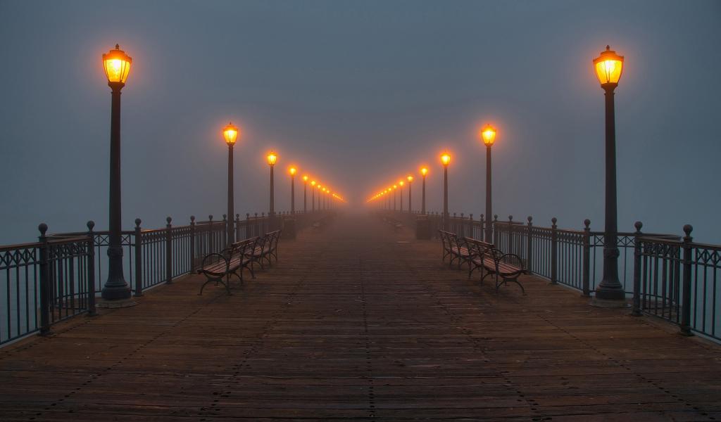 Wallpaper Evening quay leaves in the fog