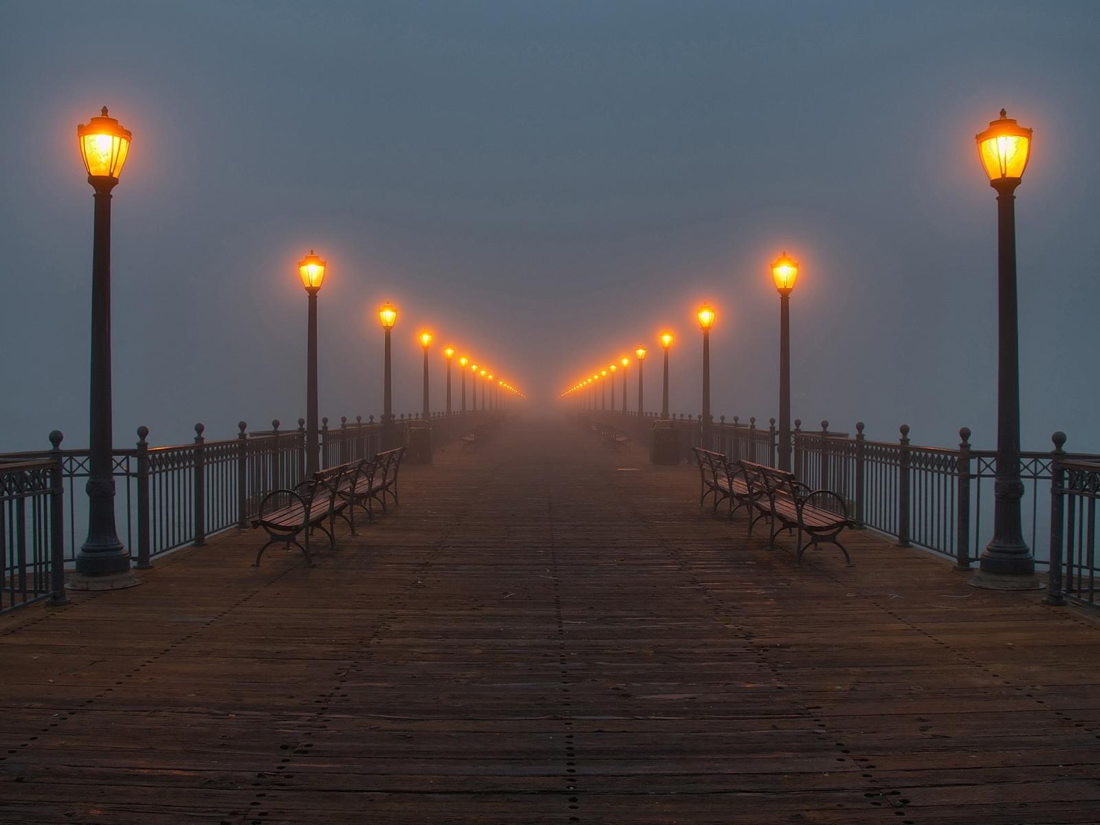Wallpaper Evening quay leaves in the fog