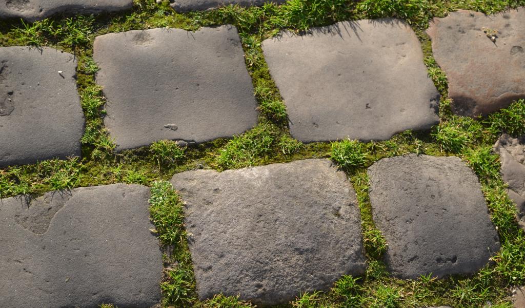 Wallpaper Green grass between the paving blocks