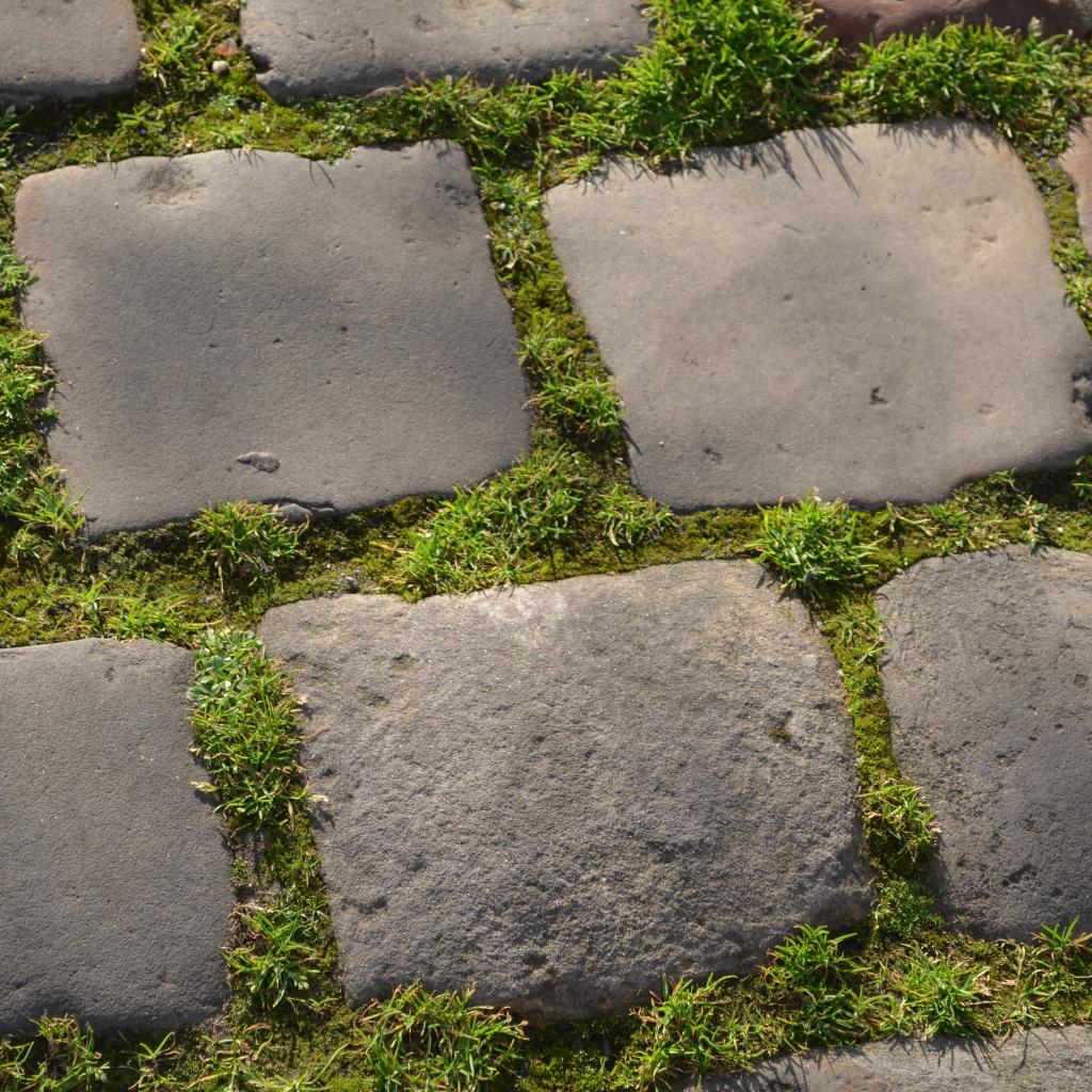Wallpaper Green grass between the paving blocks