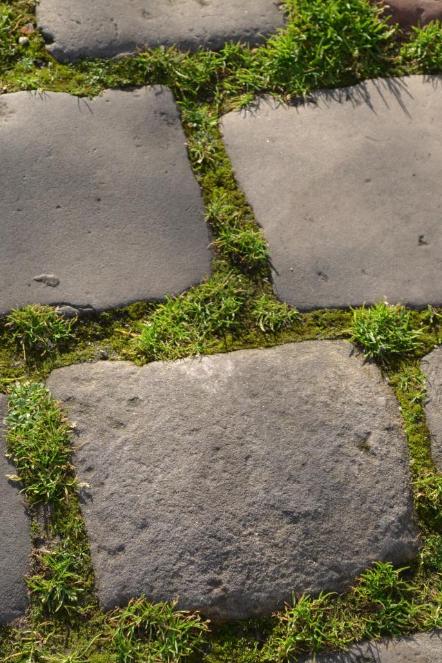 Wallpaper Green grass between the paving blocks