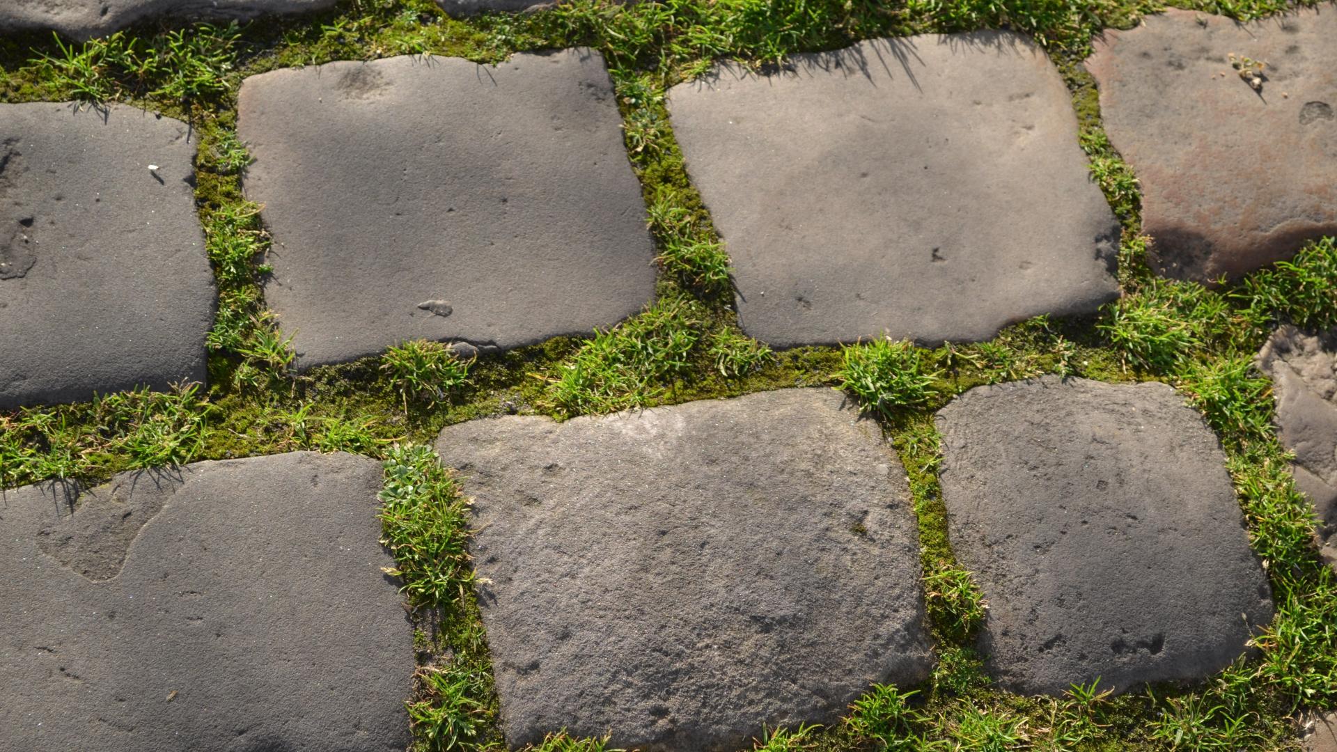 Wallpaper Green grass between the paving blocks