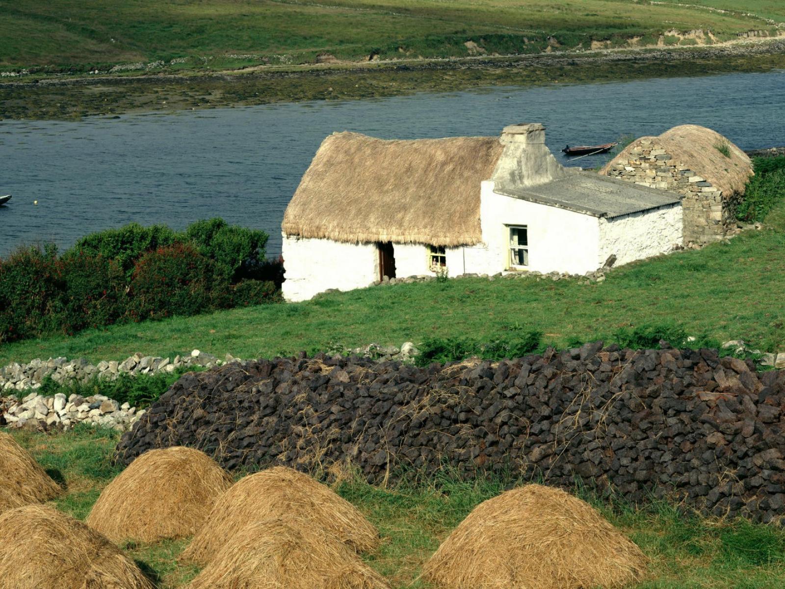 Wallpaper Thatched house on the river bank