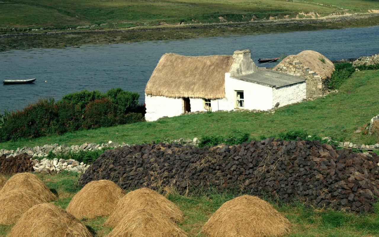 Wallpaper Thatched house on the river bank