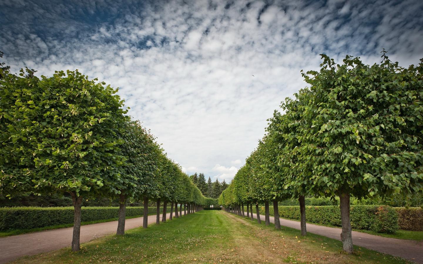 Wallpaper Accurate alley of deciduous trees