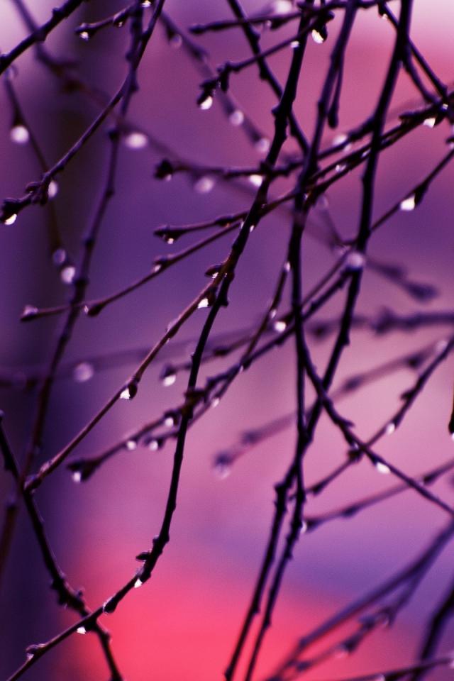 Wallpaper Raindrops on the ends of the branches of the tree