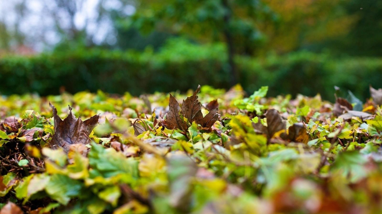 Wallpaper Fallen leaves on the grass near