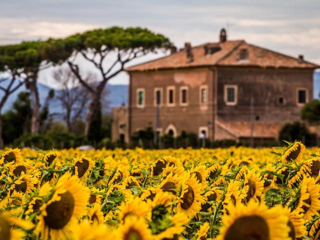 Wallpaper Villa behind the field of sunflowers