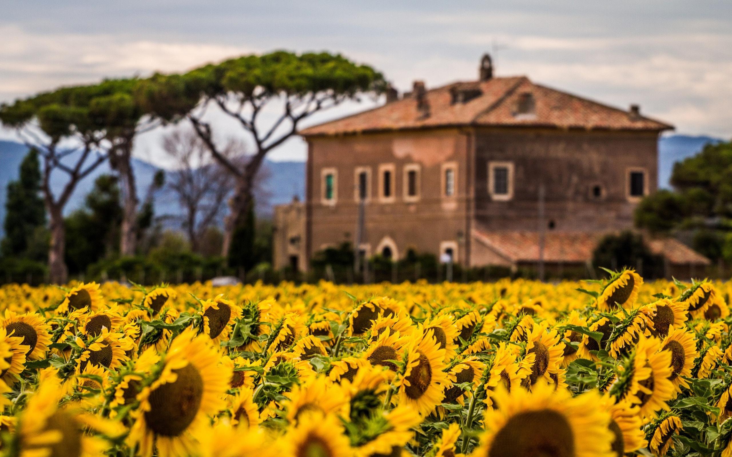 Wallpaper Villa behind the field of sunflowers