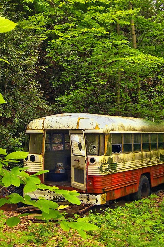 Wallpaper Rusty bus to the thickets