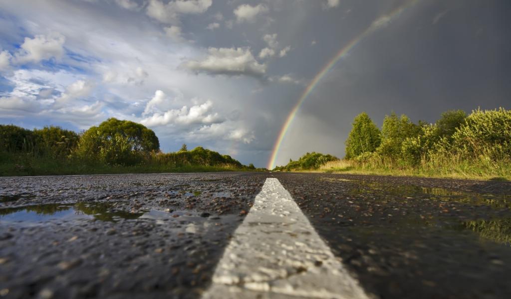 Wallpaper Rainbow over the asphalt highway