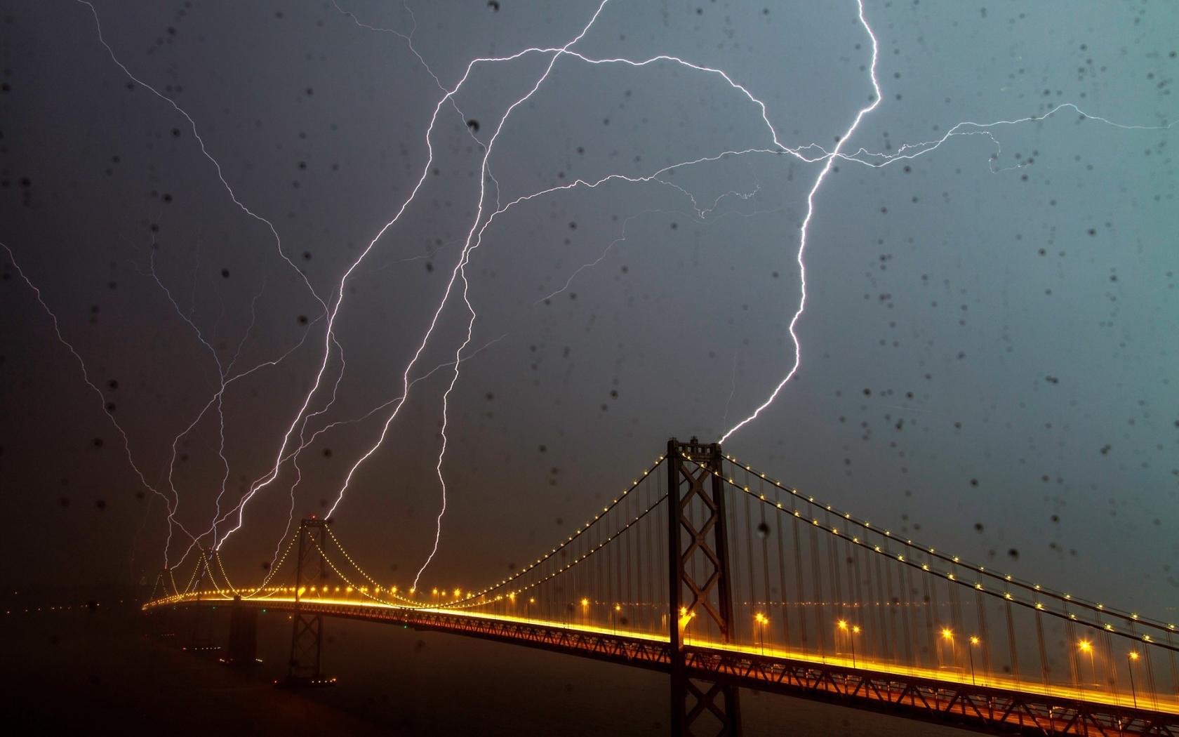 Wallpaper Lightning strikes in the bridge during a storm