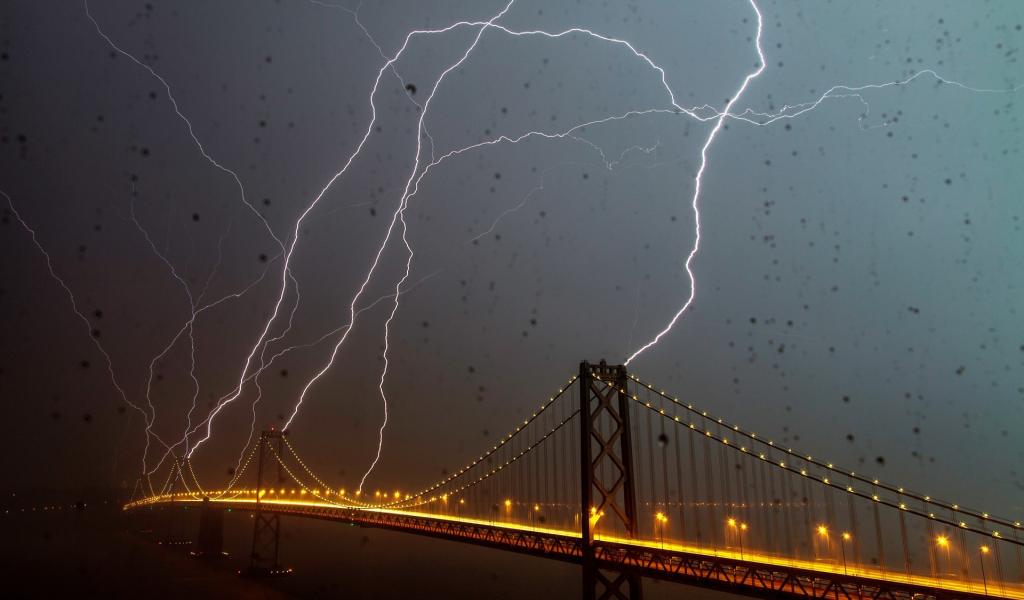 Wallpaper Lightning strikes in the bridge during a storm