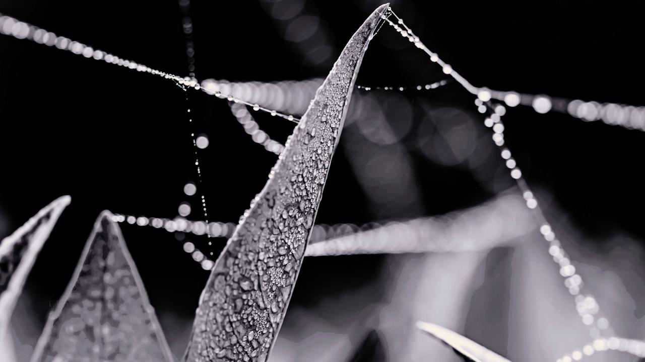 Wallpaper Dew on the grass between the web strands