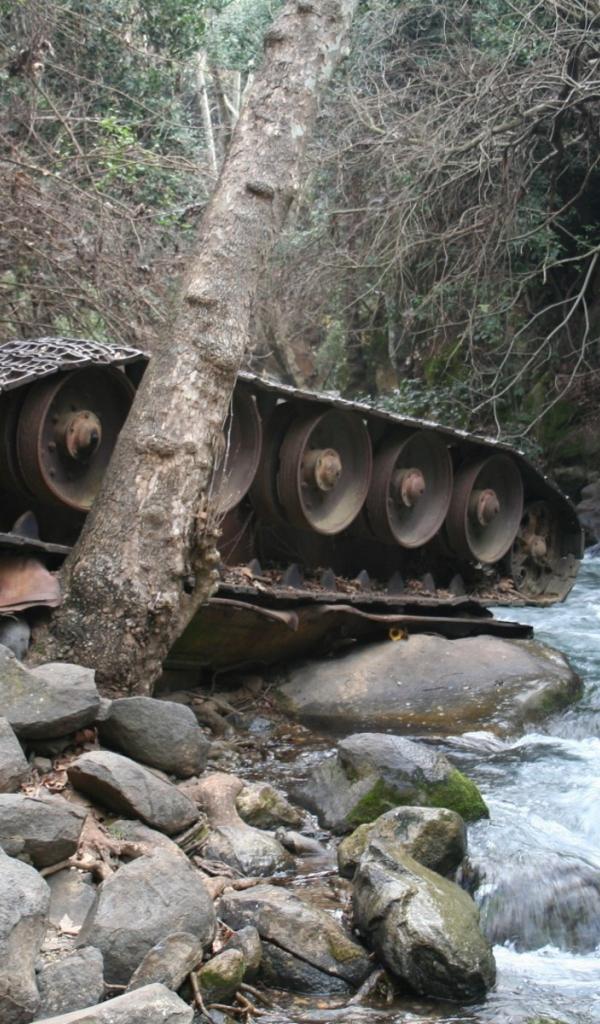 Wallpaper Inverted tank in a mountain stream