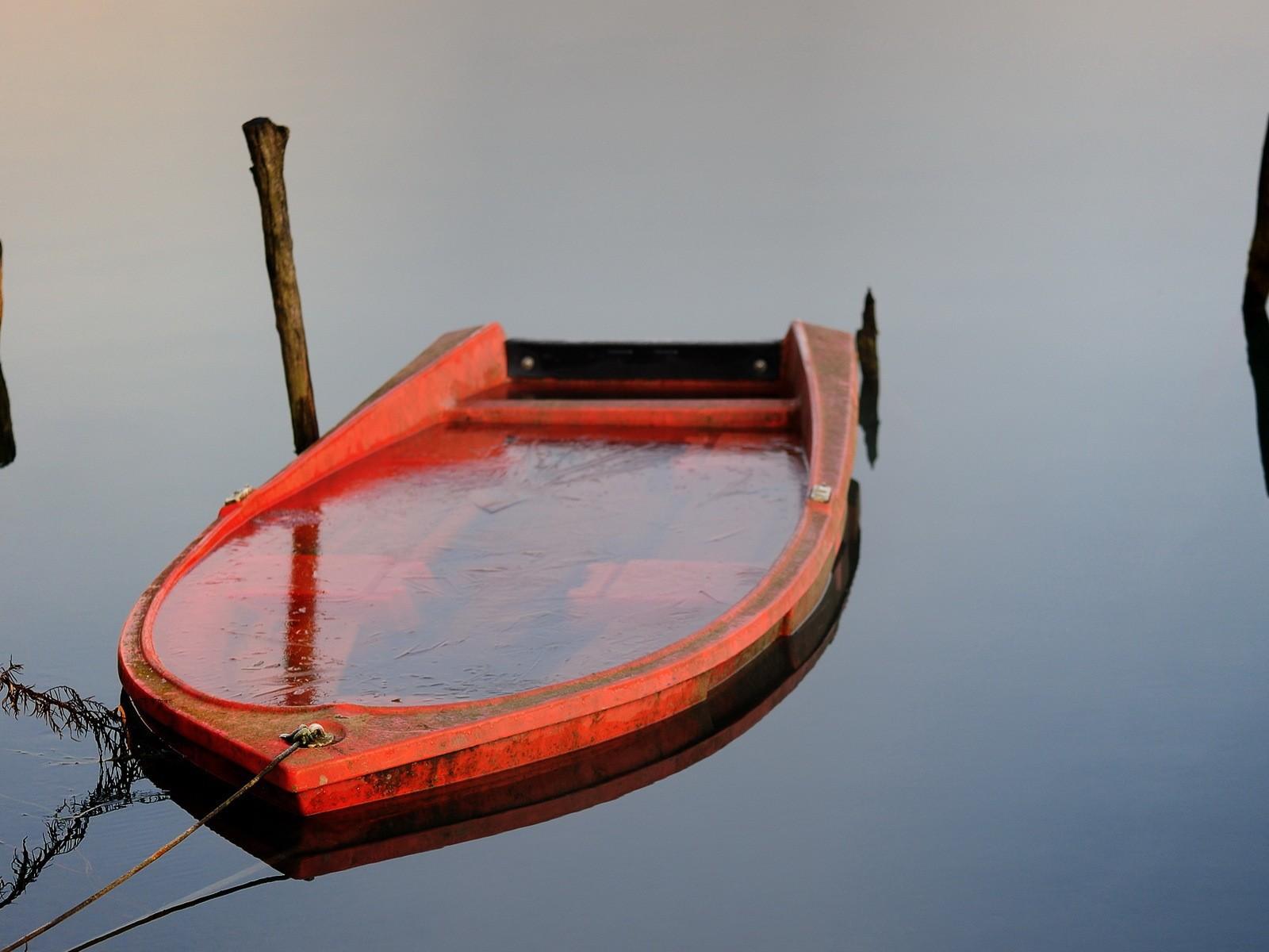 Wallpaper Boat on a leash flooded with water