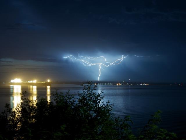 Wallpaper Tree on a background of water and lightning