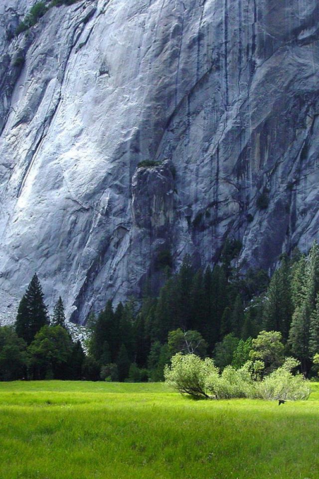 Wallpaper Monumental gray rock over the field