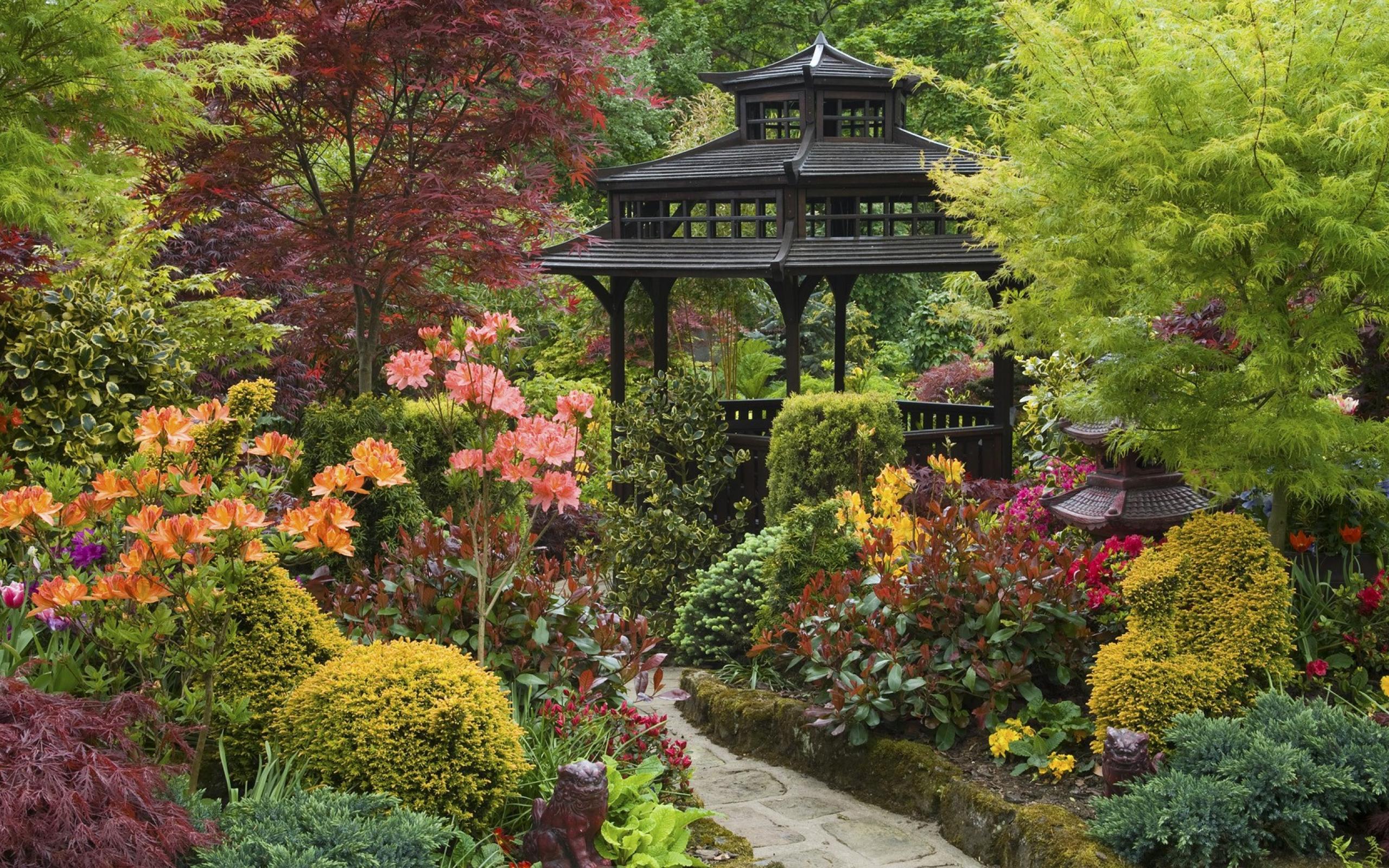 Wallpaper Black wooden pergola in the Japanese garden