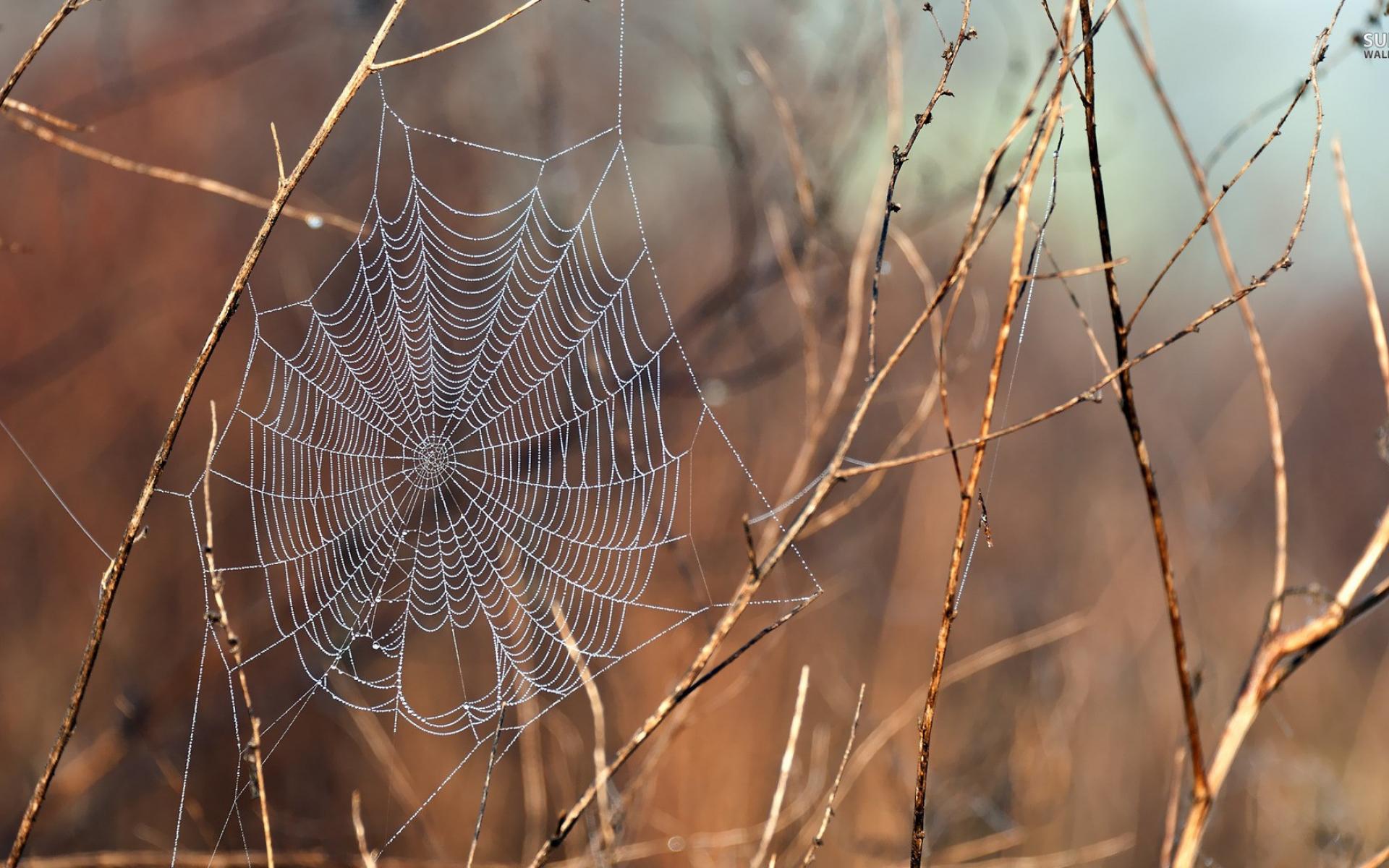Wallpaper Strands of web among the dead branches