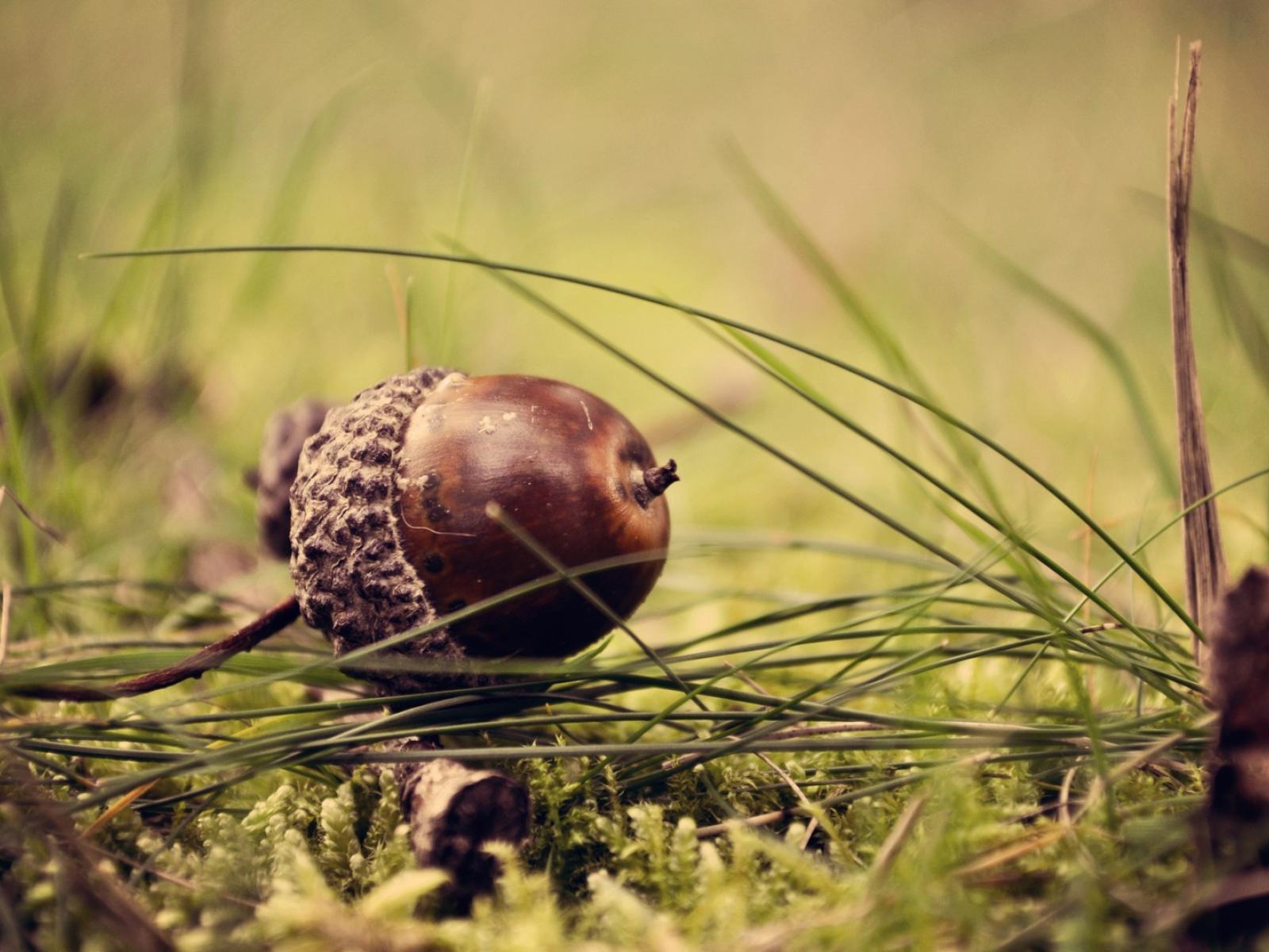 Wallpaper Brown acorn on grass