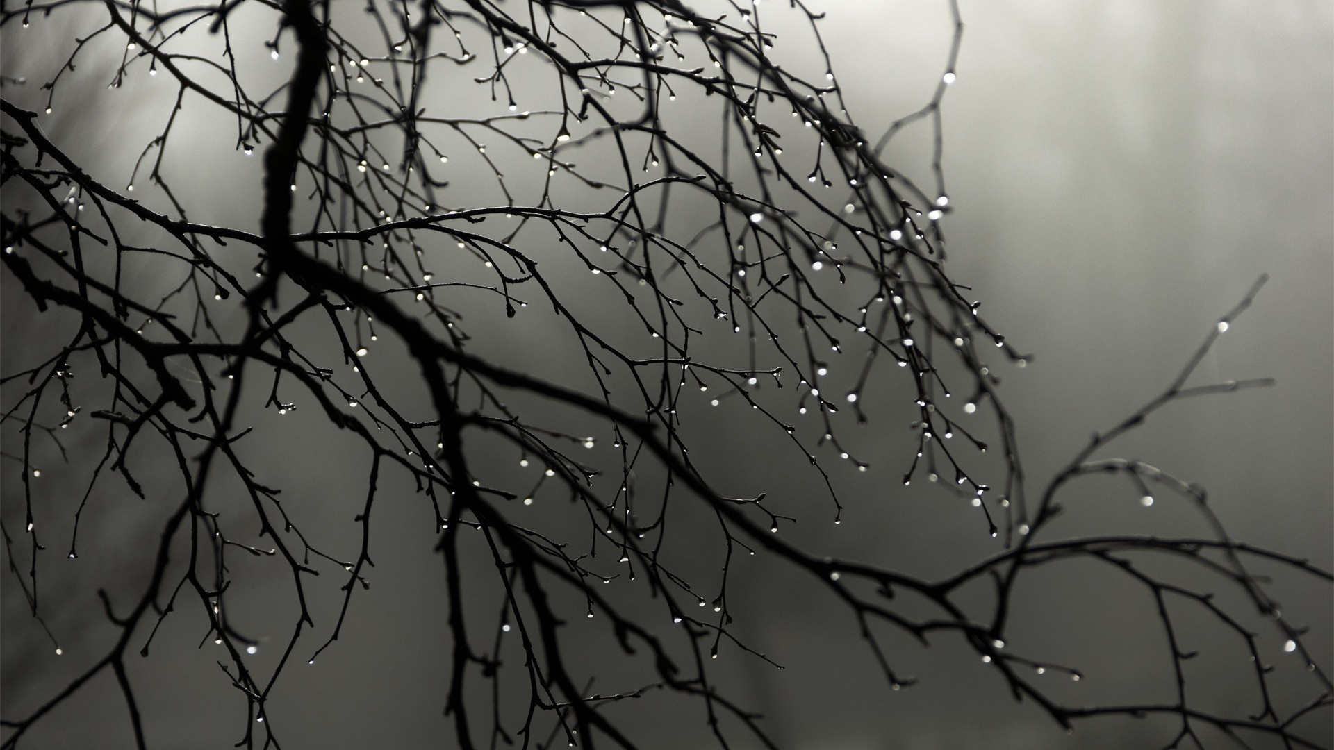Wallpaper Drops of water on the bare branches of a tree