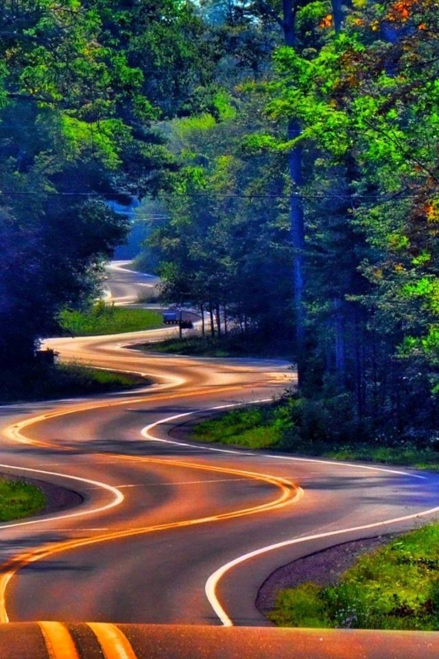 Wallpaper Winding road in the woods