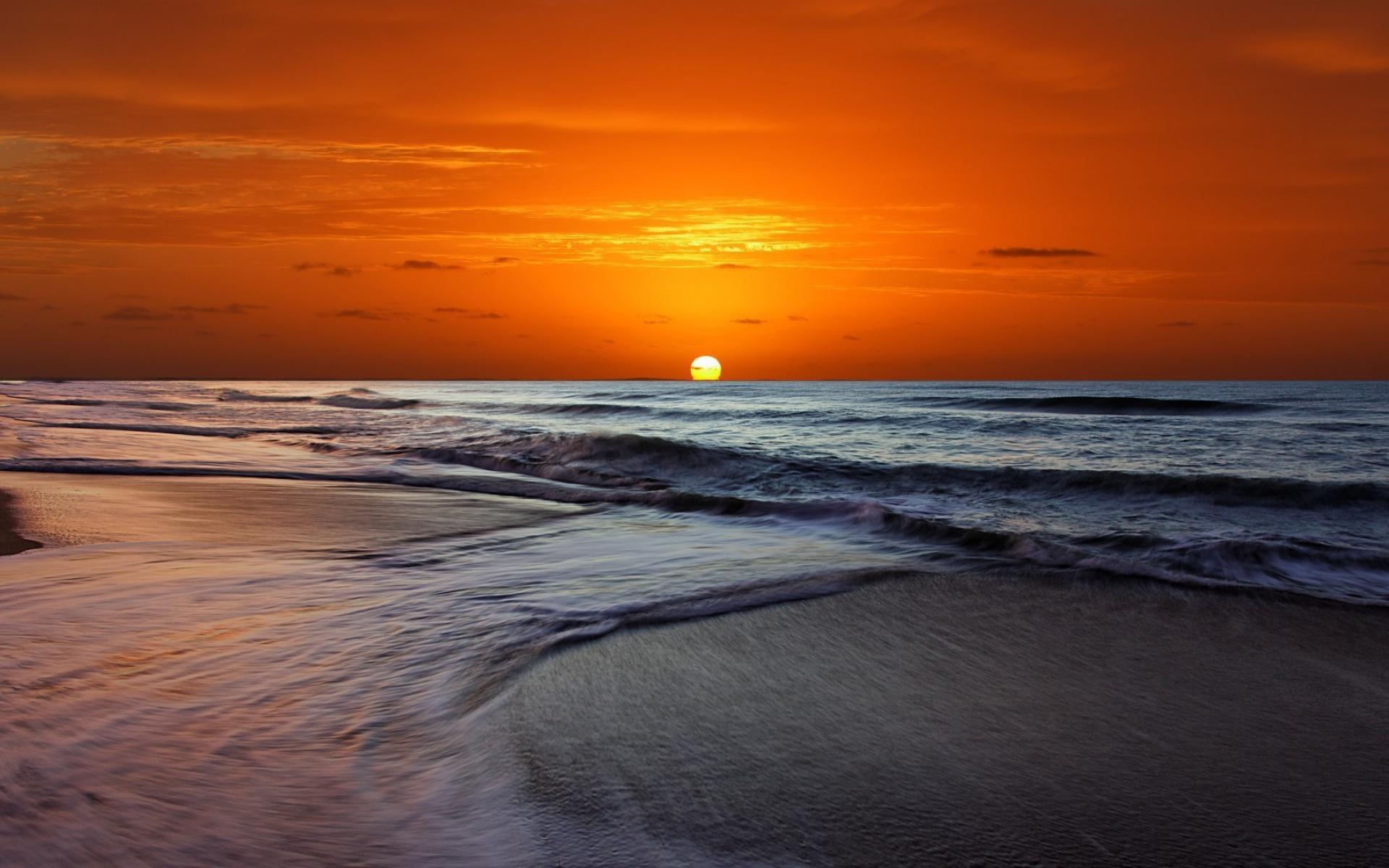 Wallpaper Orange sky and stormy sea