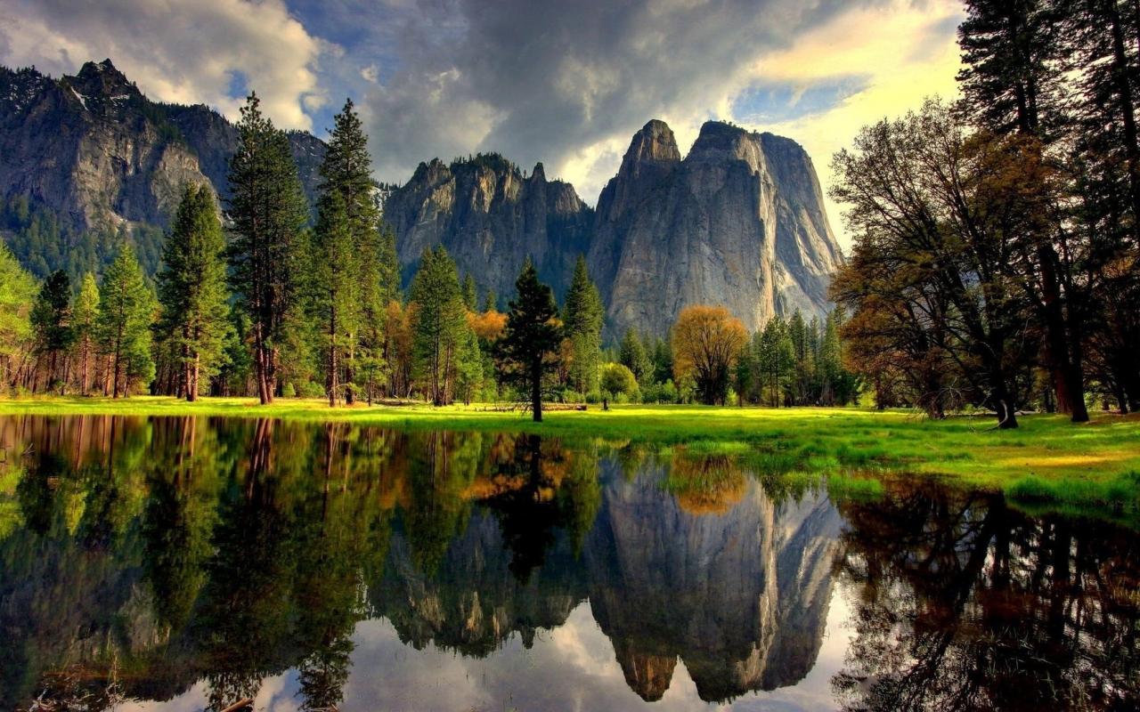 Wallpaper Rocks are reflected in the lake in the national park