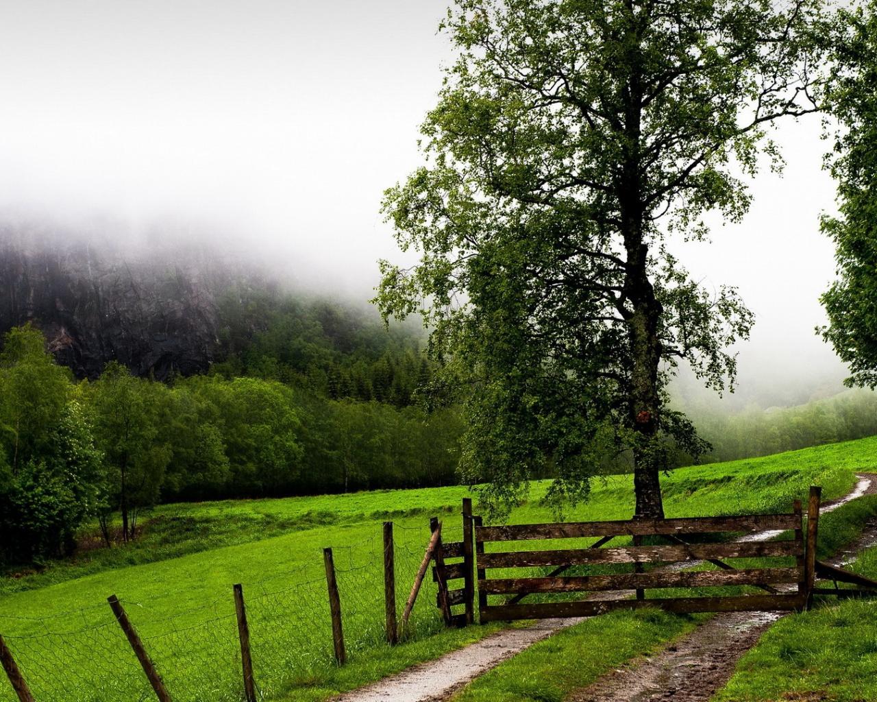 Wallpaper Wooden barrier on the path