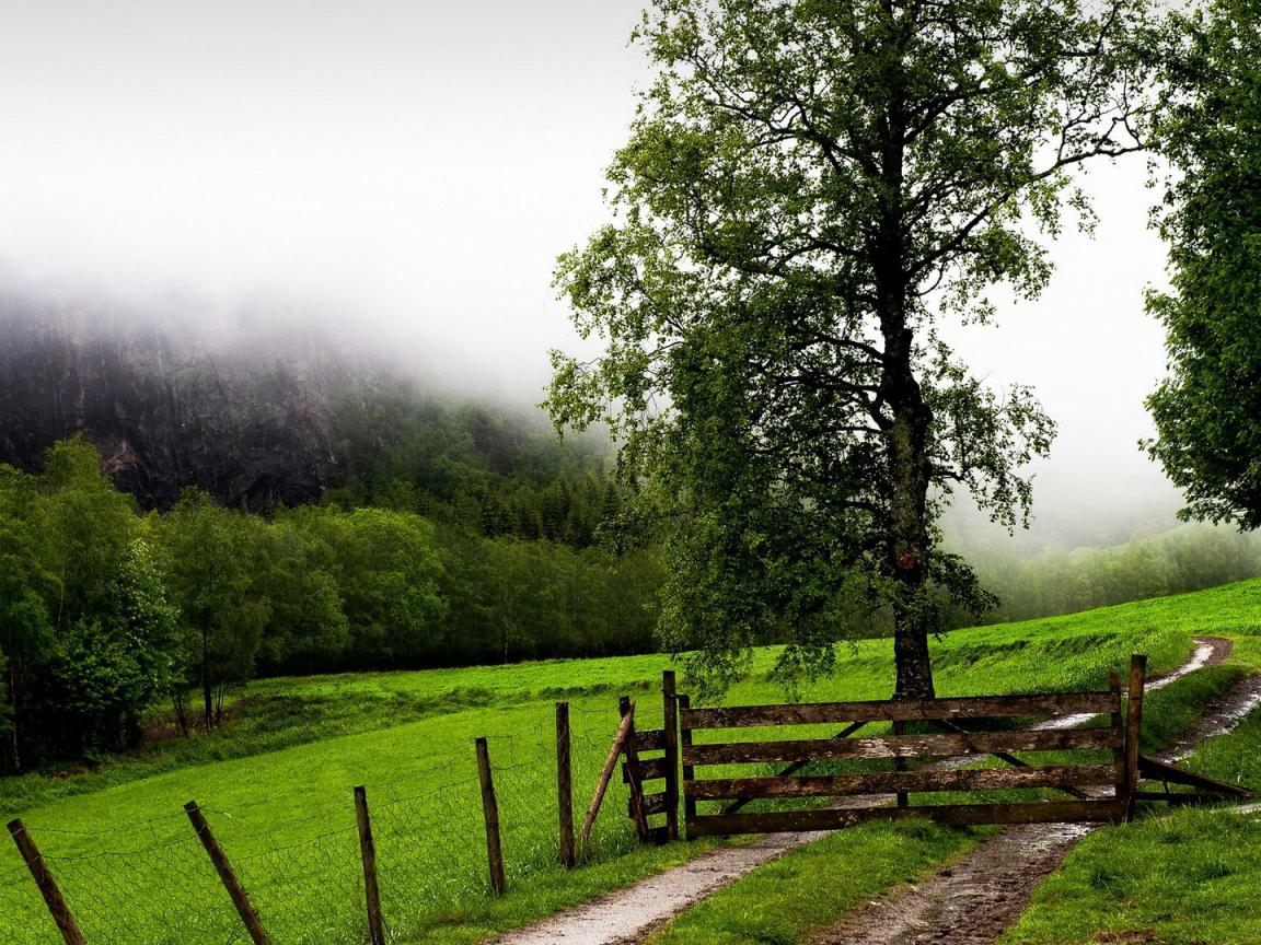 Wallpaper Wooden barrier on the path