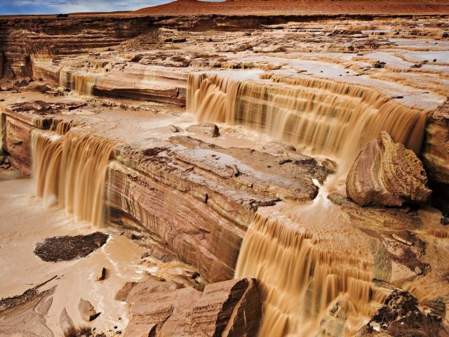 Wallpaper Muddy water flows from the rocks