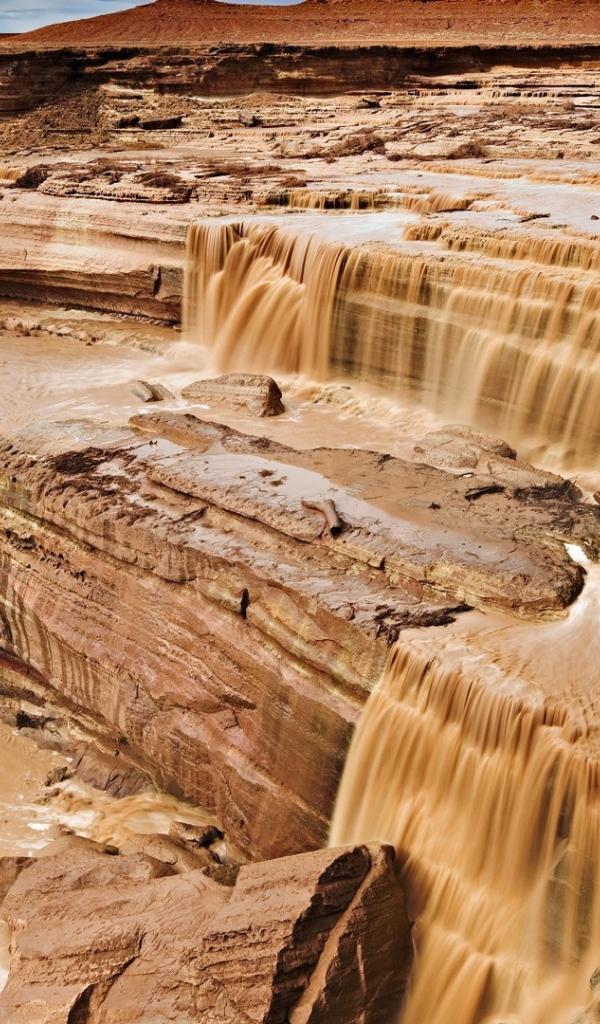 Wallpaper Muddy water flows from the rocks