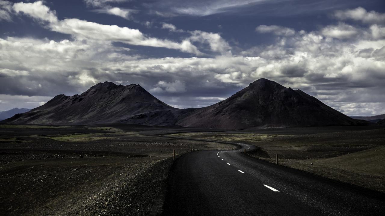Wallpaper The road goes across the plain to the mountains