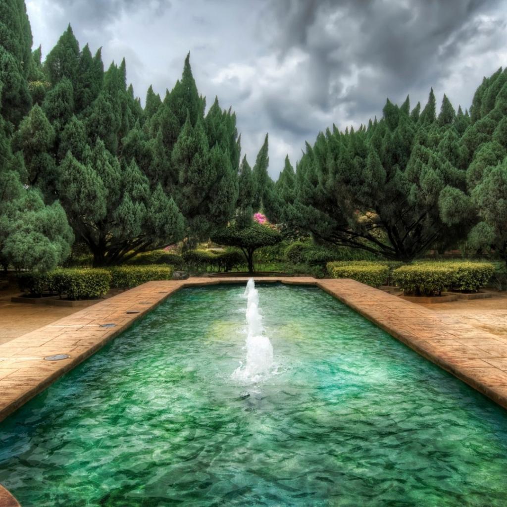 Wallpaper Pond with fountains in the garden