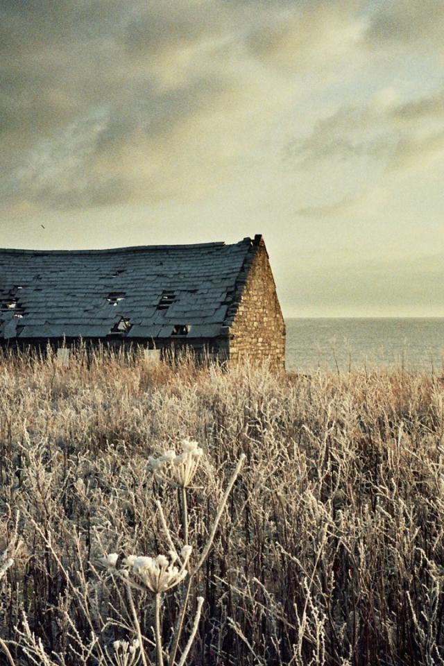 Wallpaper Ruined house on a field of dried