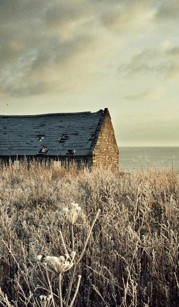 Wallpaper Ruined house on a field of dried