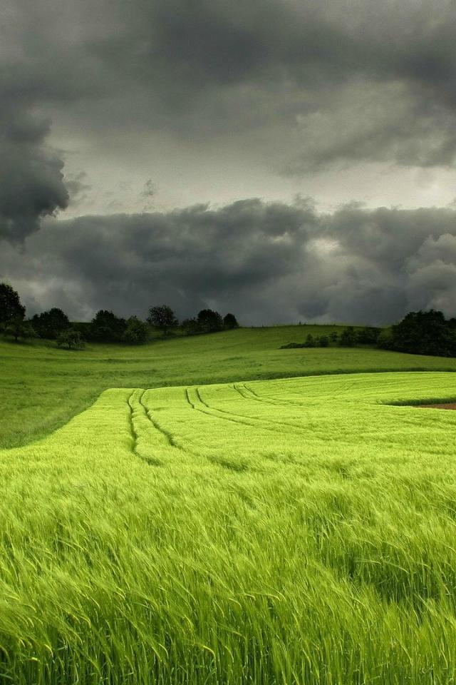 Wallpaper Storm clouds over a field of green wheat