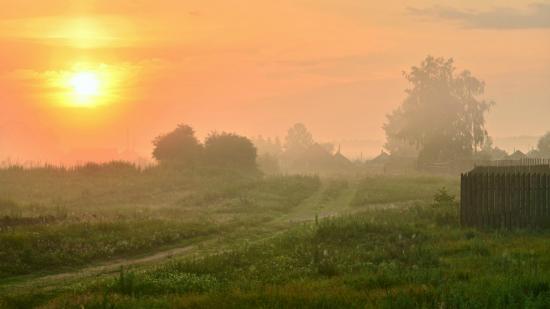 Wallpaper Misty dawn in the village