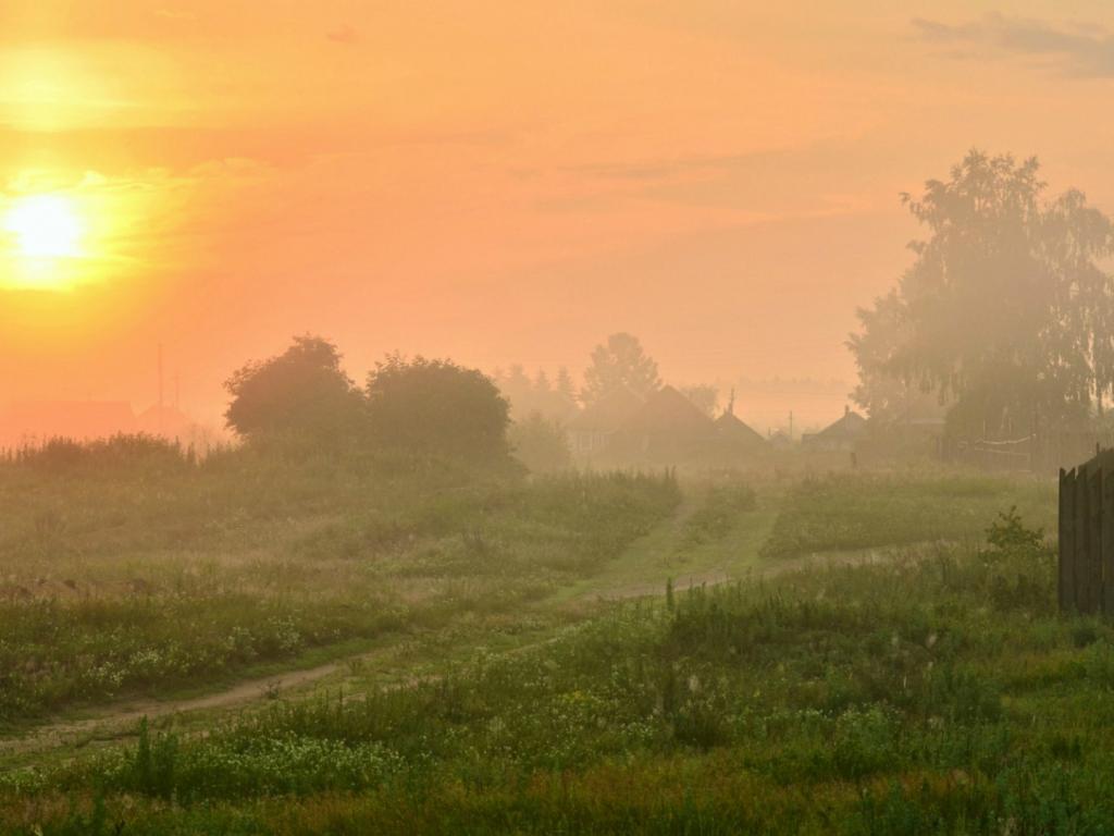 Wallpaper Misty dawn in the village