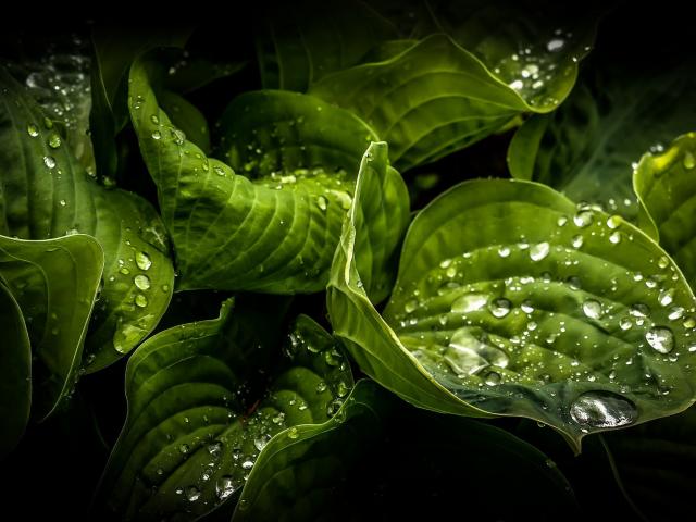Wallpaper Wet green leaves of plants