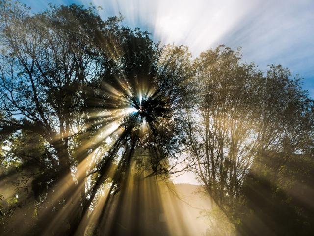 Wallpaper Rays are shining through the foliage
