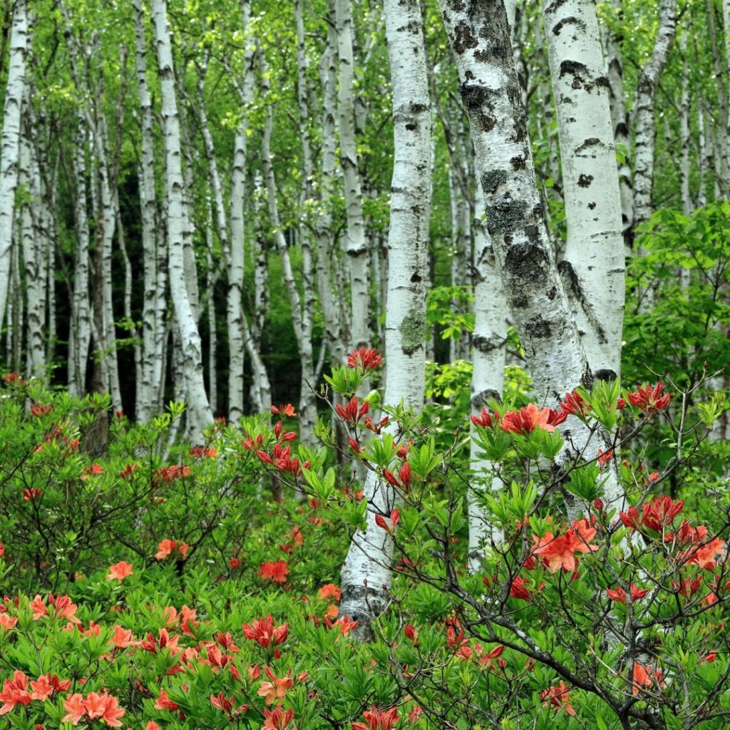 Wallpaper Pink leaves of birch