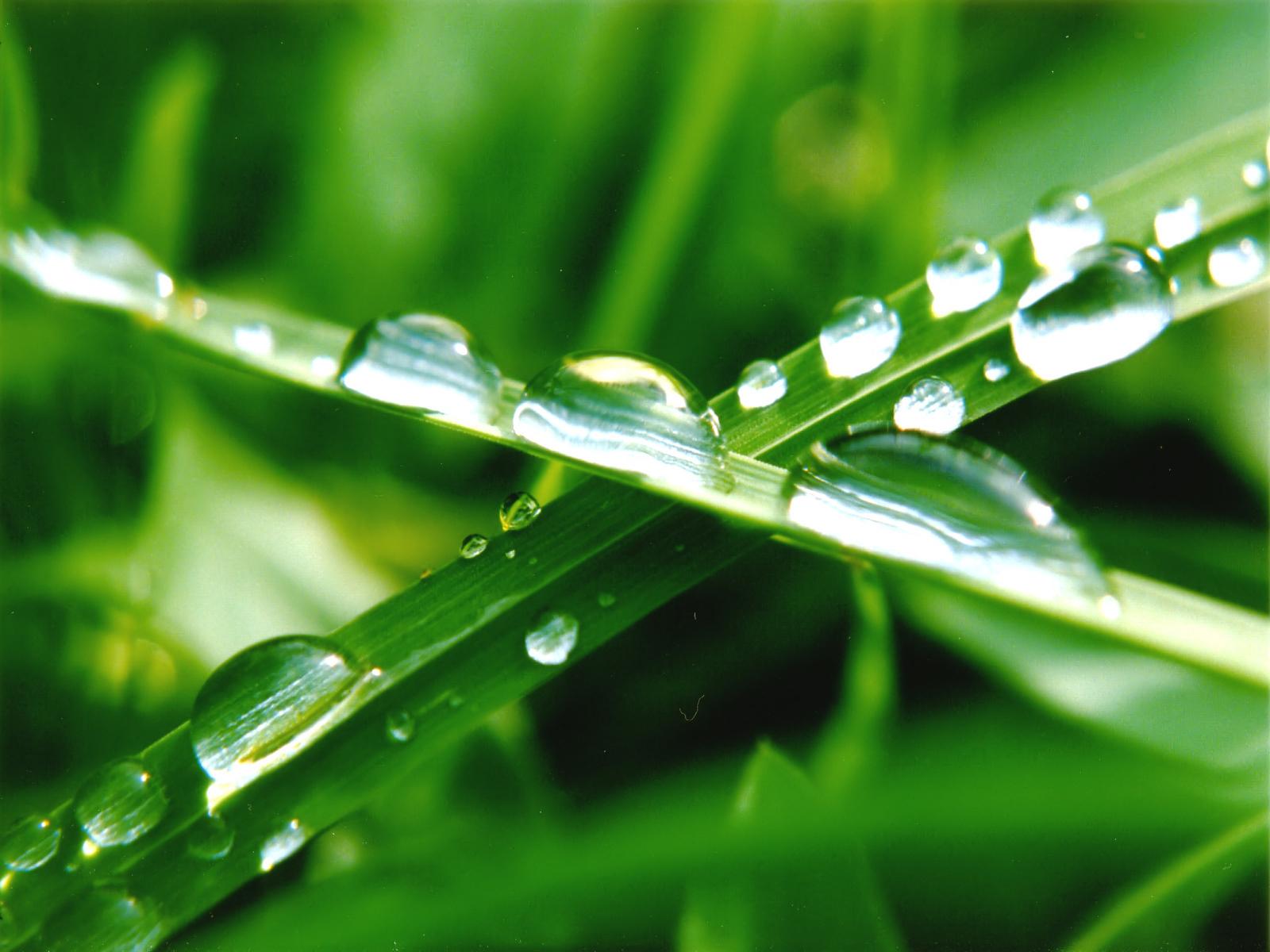 Wallpaper Drops, Green grass, Morning, Macro