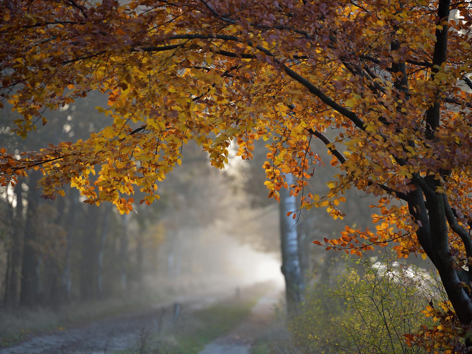 Wallpaper Trees, Road, Leaves, forest road, Autumn leaves