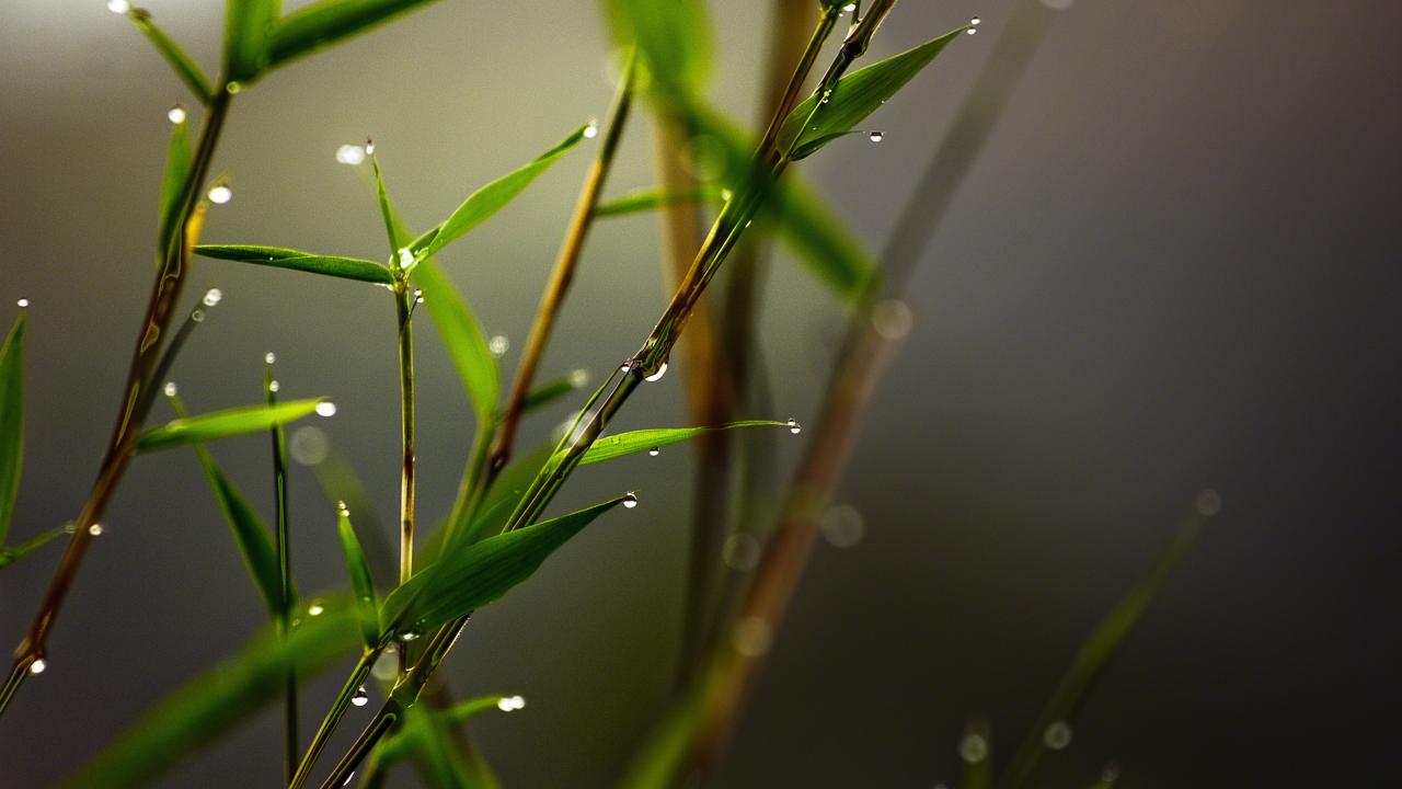 Wallpaper spray, Leaves, Morning, Dew grass, Macro, Bamboo