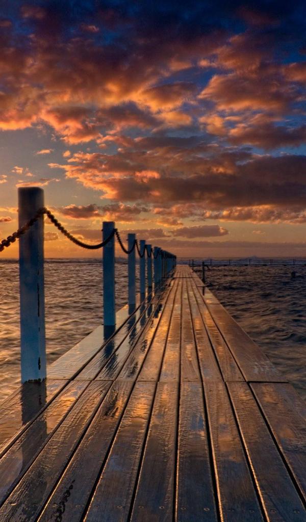 Wallpaper Ocean, Sunrise, Bridge, July