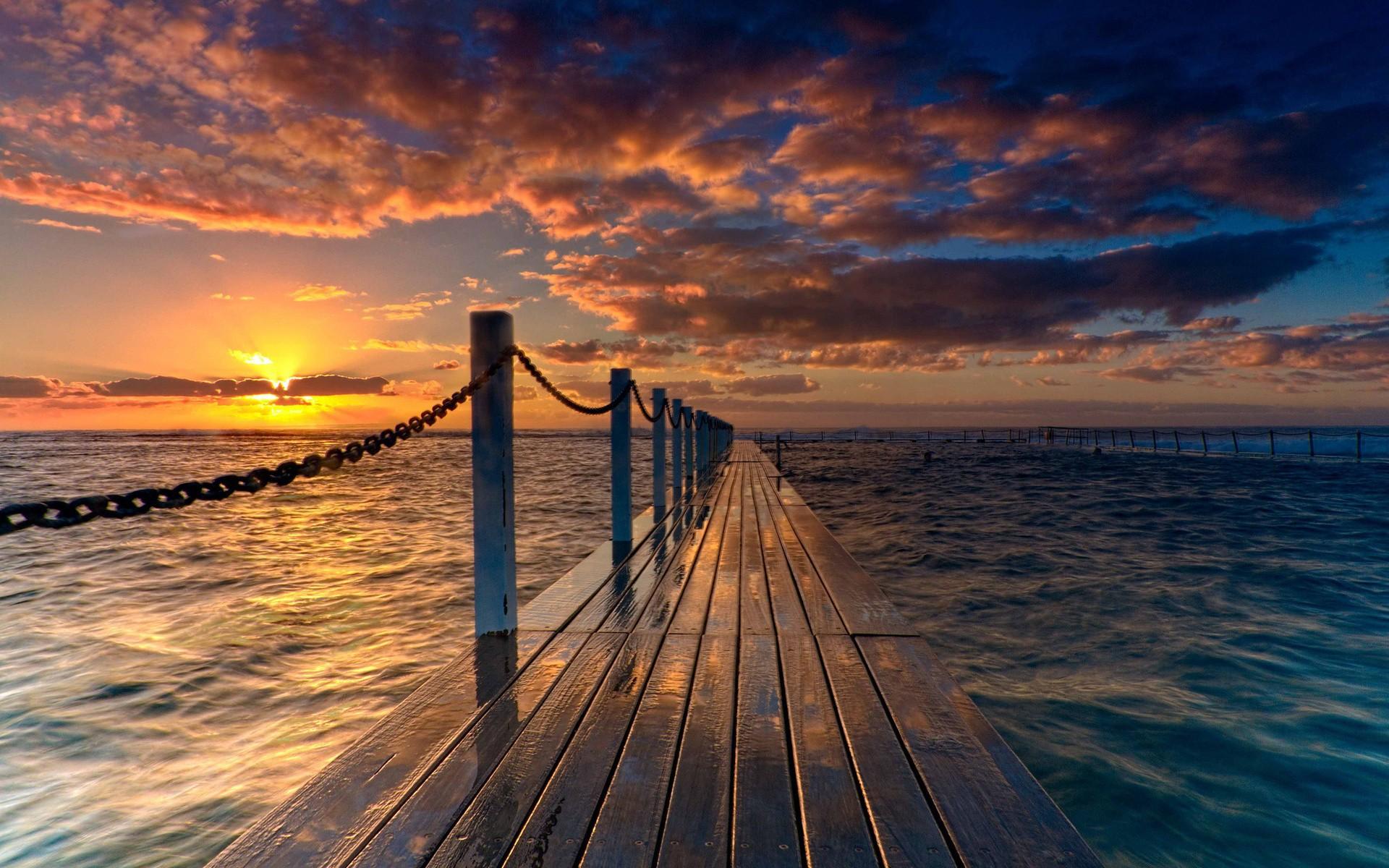 Wallpaper Ocean, Sunrise, Bridge, July