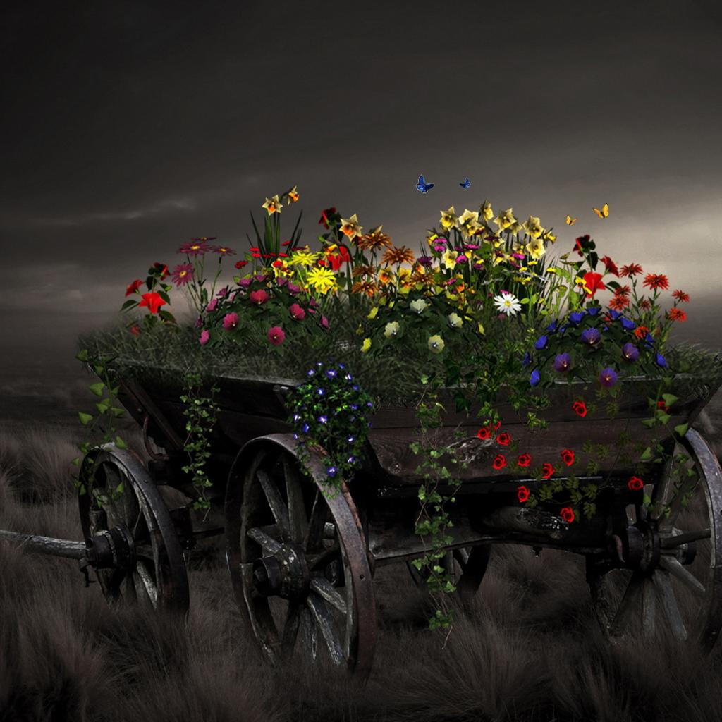 Wallpaper Grass, style, cart
