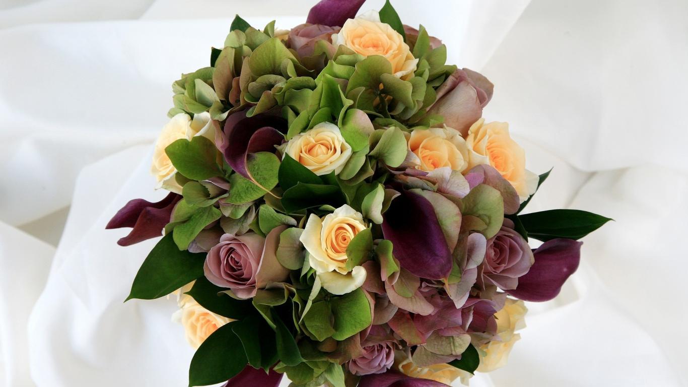 » Wallpaper Leaves, Bouquet of roses